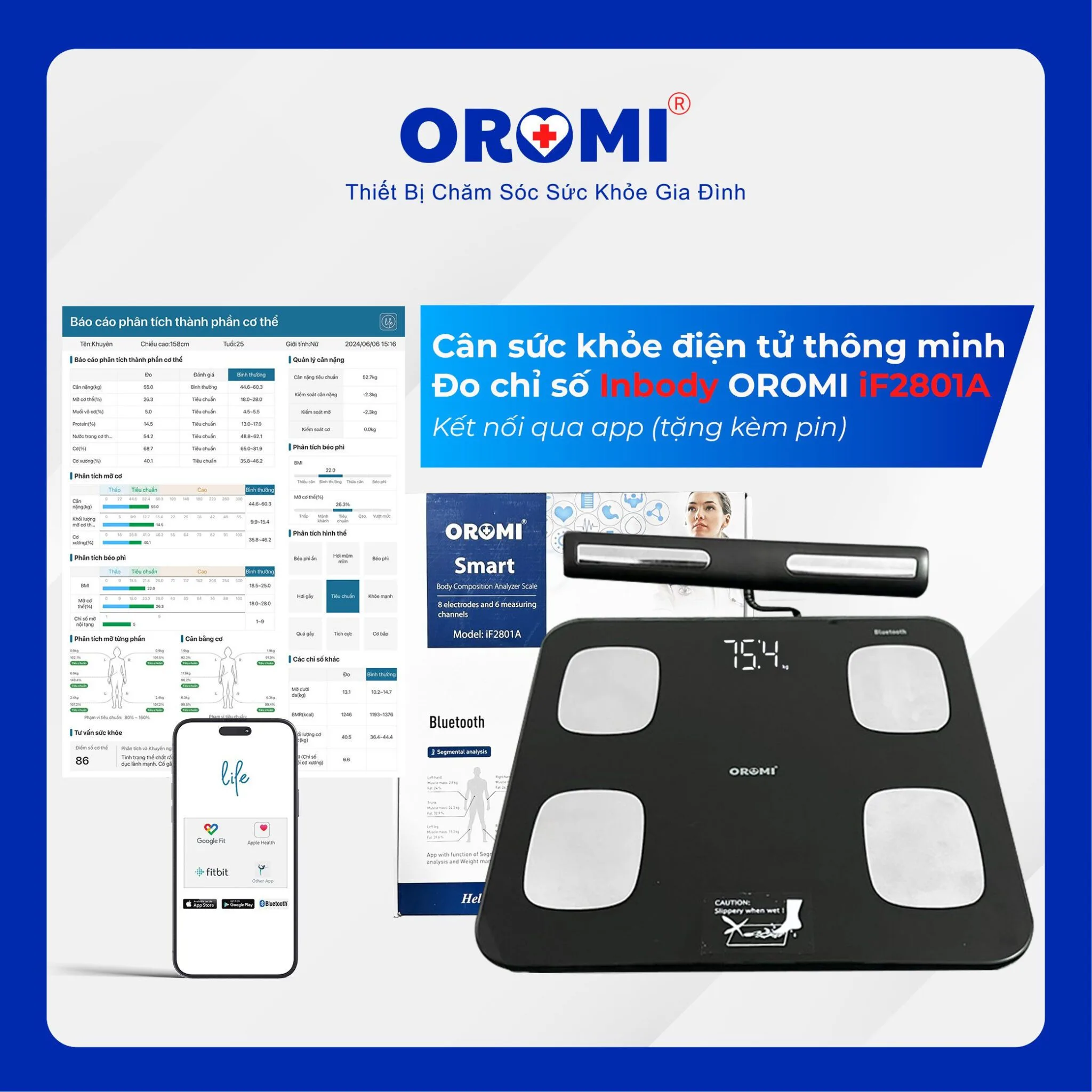 Cân Sức Khỏe Điện Tử Thông Minh, Có Kết Nối Bluetooth, Đo 17 Chỉ Số Cơ Thể -iF2801A